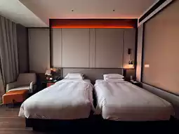 This time, my friend and I chose a “Lake View Twin Room.” The room is quite spacious, with the sofa and work areas combined into one open space. The overall design is very minimalist, making good use of hidden horizontal light strips to add a touch of elegance.
