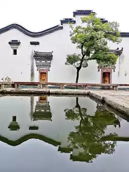 Huizhou-style architecture: white walls, grey tiles, classic horse-head gables