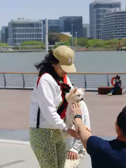 A 1,200-square-meter riverside pet park is open for free, fully equipped with sand pits and drinking facilities. Most restaurants in the mall welcome pets, with Starbucks offering special pet seats and a terrace with river views for dinner—super thoughtful. The pet store "Electric Power" provides one-stop services, truly a paradise for furry friends.