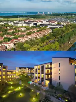 The hotel is located on the east side of Chongming Island, surrounded by lush natural scenery. You can not only watch migratory birds soaring over Dongtan Wetland Park but also easily visit the cycling park and Lan Hai Golf Course to enjoy outdoor sports. Here, every breath is filled with fresh air, making you forget the worries of the city.