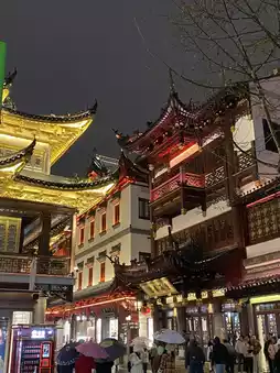 Even though it was raining, the evening atmosphere was amazing. The lights came on and it looked beautiful. The old buildings in classic Chinese style were truly impressive. The architecture was wonderful, pleasing to the eyes and heart, and every photo came out beautiful from every angle.