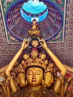 Especially the 34-meter-high thousand-handed Buddha statue.