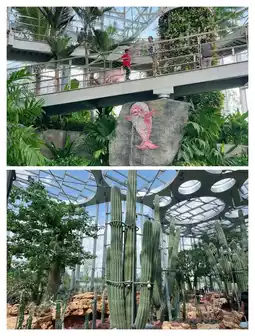 The greenhouse garden is like a plant kingdom and also requires advance tickets. It consists of three pavilions: Marine Sandbank, Cloud Forest, and Misty Canyon. An underwater tunnel connects Marine Sandbank and Cloud Forest, making it a perfect spot for photos that will go viral on social media. Walking through it feels like being in a tropical rainforest, with rare plants everywhere you look.