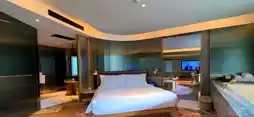 The hotel is located at 5888 Chenhua Road, Songjiang District, Shanghai, in "the root of Shanghai" Songjiang, adjacent to the Shanghai Hongqiao Hub area. The biggest advantage of the rooms is their spaciousness and comfort, equipped with JBL audio-visual systems, Dyson hairdryers, Salvatore Ferragamo Tuscan Soul amenities, self-heating toilets, and more. At night, you can enjoy a drink on the balcony while watching a light and water curtain show, which is very nice. The rooms include access to a buffet and the Deep Pit Secret Realm Park. Entertainment facilities include: