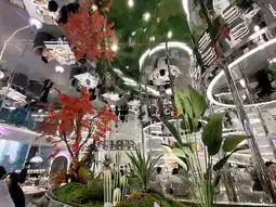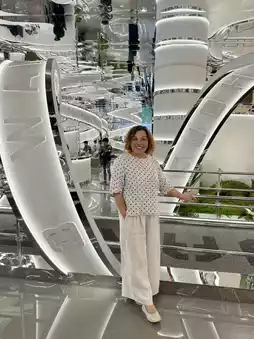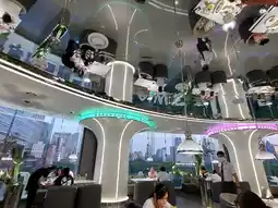#The smartest decoration is the ceiling full of mirrors combined with white and silver design tones, instantly creating an otherworldly space effect