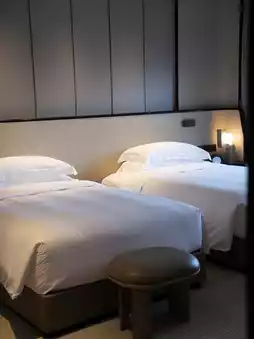 🛏️ Room: The room I stayed in was quite spacious, especially with two balconies with a view. The bathroom is mainly black and white, and there are many curved elements in the room, which are not sharp and are relatively soft. One problem is that there is no suitable writing desk or office desk. I guess it's to let us have a good rest and not think about work or study during our vacation…