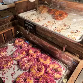 The "bagel internet celebrity" New York Bagelous Museum has landed in Shanghai! Local friends in Shanghai now have another high-quality brunch option. As soon as you walk into the store, you are surrounded by the rich aroma of bread. Although the store is not large, it is very popular. The overall decor of the store features an American retro style, full of detailed touches~ A row of wooden bread racks is placed in front of the red brick wall. The must-try is the signature scallion cream cheese bagel, where the scallions combined with cream cheese create an indescribable freshness! There are some seats outside where you can sit and eat~