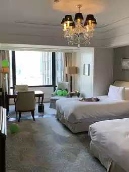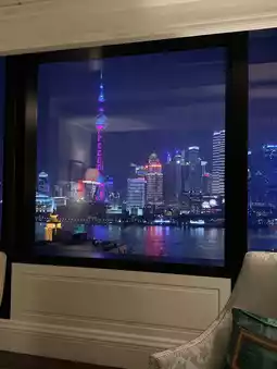 The rooms feature high ceilings and a design that impresses with calm-toned wood and marble. The bathroom is spacious and luxurious, equipped with double sinks and a bathtub. The soundproofing is excellent, providing a peaceful quietness far from the hustle and bustle of the Bund area.