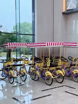 The hotel is located at the northern end of Chongming Island in northern Shanghai, about a 1-hour drive from downtown Shanghai. The hotel features a family-friendly theme, perfect for weekend family trips to escape the city noise and enjoy the countryside scenery. It offers standard Sheraton services, with very warm customer service and restaurant staff. The hotel covers a large area with abundant outdoor greenery, blending with the surrounding rural landscape. You can rent bicycles or tricycles to explore the area or enjoy family cycling fun. The hotel also provides two playgrounds, indoor and outdoor, as well as a swimming pool and other facilities.