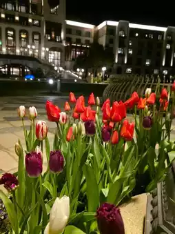During our stay at the Shanghai Disneyland Hotel, we were captivated by the vibrant spring blooms just outside. The hotel's gardens were adorned with a stunning array of flowers, including tulips, creating a picturesque setting that felt straight out of a fairy tale. One of the most enchanting sights was the Mickey-shaped flower arrangements, where petals naturally formed the iconic silhouette, adding a touch of Disney magic to the landscape.