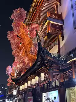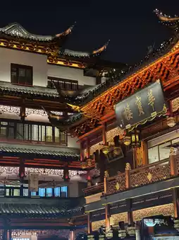 Stroll along Yuyuan Old Street for local snacks, silk shops, and souvenirs under golden lights.