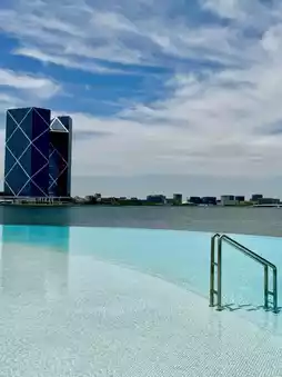Far from the city, the InterContinental Dianshui Lake is the most expansive stop on my trip. The hotel is located by the lake, and the pool feels like an extension of the lake water, as if you could swim right into the horizon. Unlike the rooftop pools in the city center, this infinity pool blends seamlessly with nature, offering a breath that is close to the earth and time. When I step into the pool, my view instantly stretches between the lake surface and the sky; the water is calm like a mirror, reflecting the afternoon clouds and distant sailboats. This place is neither noisy nor flashy; it simply exists quietly, waiting for every traveler willing to calm their heart to feel it. The pool at Dianshui Lake feels like a conversation with heaven and earth, whispered yet profound.