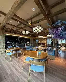 Stepping into the room, the full Japanese minimalist style instantly relaxes you. L'Occitane amenities, floor heating, and even a capsule coffee machine... who wouldn’t love these features? Driving into the hotel, the Japanese-style vibe hits you, giving a refined and elegant feeling. The restaurant is on the right side of the hotel entrance, and the small courtyard really won my heart. Inside the restaurant, the space is quite large; sitting by the window, there’s a pond a little further out with blooming water lilies.