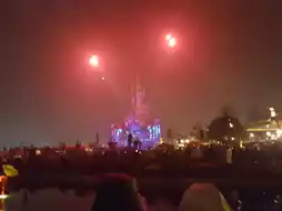 Disney characters appear on the castle walls, songs play, and the fireworks display is incredibly spectacular🌺.