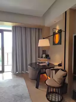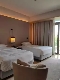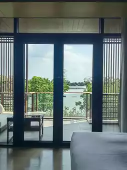 Stepping into the hotel feels like entering a Jiangnan water town courtyard. The design concept of "Waterside Courtyard Residence" runs throughout, with views of Fulin Lake outside and elegant gardens inside. The 244 Zen-inspired, tasteful rooms and suites average about 56 square meters, with most featuring balconies and outdoor furniture, allowing you to enjoy picturesque scenery without stepping outside. Unique courtyard lake-view rooms and suites come with private gardens leading directly to the lakeside, letting you fully savor the shimmering waters of Fulin Lake in a private setting.