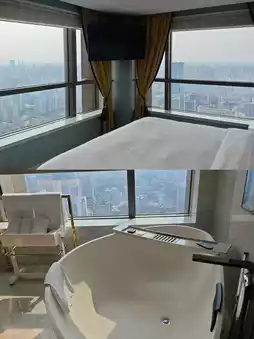 - **Tiffany blue bathtub** + **Diptyque toiletries**, you can even see the Oriental Pearl Tower while soaking!