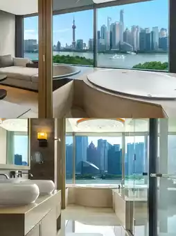 The entire room was carpeted, with a subtle aroma of essential oils—every detail was perfect. My favorite part was the large bathtub by the floor-to-ceiling window! You can overlook the entire river view of Shanghai Bund.