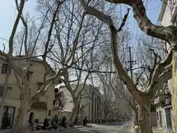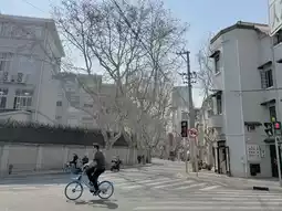 We walked along Yuqing Road towards Hengshan Road. The bare street trees paired with the off-white low houses create a harmonious scene. Occasionally, you can spot a few trees budding with fresh leaves and small flowers. It's easy to imagine how colorful and lively this street must be in the height of summer.
