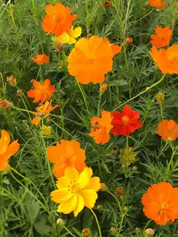 💗 About 80% of the sulfur cosmos are still blooming, quite spectacular. The cosmos flowers have mostly passed their peak, with only about 30-40% left.