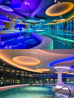 This hotel is built into a deep pit cliff, with an overall downward structure, like a mysterious palace embedded below the horizon. The designer cleverly uses the original terrain to create a "reverse growth" vertical city.