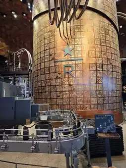 The space itself is absolutely breathtaking, stretching across 30,000 square feet of what can only be described as industrial coffee theater. The centerpiece copper cask dominates the room like a magnificent sculpture, while the mesmerizing network of copper tubes overhead creates an almost steampunk atmosphere that's both functional and fantastical. Watching the freshly roasted beans travel through this elaborate pneumatic system is genuinely captivating, and I found myself standing there for minutes just following their journey.