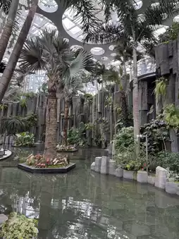 Stepping under the dome of the **Shanghai Chenshan Botanical Garden**, you feel like you've been transported to another world - a lush jungle surrounded by sparkling waterfalls, where towering tree-like cacti rise amidst the misty vapors. It's like being on another planet where plants rule the world"* 🌵🌿💧 Spectacular photo angles.
