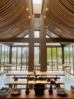 The guesthouse is tucked away in the ecological heartland of Chongming Island, boasting hundreds of acres of ecological farms and native forests. Open the window to see rippling rice fields and graceful egrets. The natural wood-colored buildings blend harmoniously with the landscape, with flowing water and swaying flowers in the courtyard, offering different romantic scenes through the changing seasons. Whether it’s the morning mist in the forest or the brilliant sunset in the evening sky, you’ll be immersed in the poetic serenity of pastoral life.