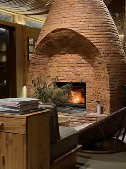 Step inside the guesthouse, where 12 uniquely styled rooms are inspired by the “pine,” cleverly integrating natural elements into the design. Extra-large floor-to-ceiling windows bring in ample sunlight, paired with furniture made from natural materials and soft lighting to create a warm and cozy living space. Some rooms even feature private terraces and scenic bathtubs, where you can soak in warm water while gazing out at the distant countryside, allowing your body and mind to fully relax in the moment.