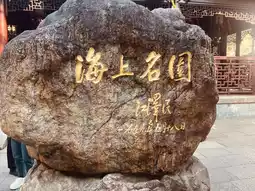 ▸ Jiang Zemin’s golden brushstroke pierces the ancient rock! The words "Famous Garden by the Sea" pulse within the moss, as the 600-year-old building peeks through the lattice window to witness this scene.