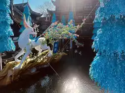 ▸ The blue Christmas tree slices the flying eaves into diamonds! As the light blade cuts through the "Wave Corridor" plaque, Ming Dynasty roof tiles catch the dusk of the 21st century.