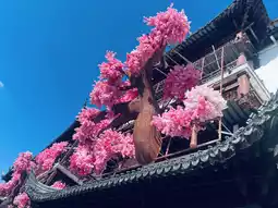 ▸ Thousands of pink petals bomb the black tile battlefield! The moment branches pierce the Xieshan roof peak, spring presses the pause button on the eaves.