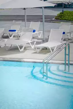 · Professional lifeguards are on duty by the pool, ensuring safety.