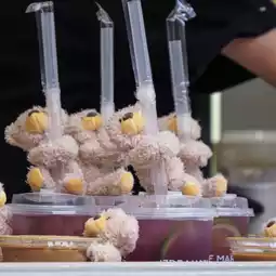 • Every drink comes with a teddy bear clinging to the cup, and takeaway is available so you can take the bear home!