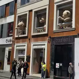 • Upstairs has a teddy bear photo corner plus a zone selling bear-themed clothes, hats, and accessories