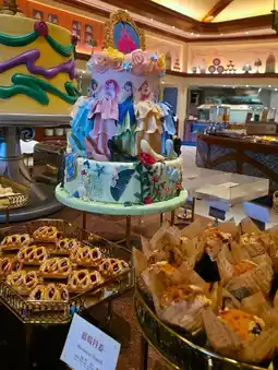 Dining in Lumiere's Kitchen is an extravanganza in itself. It's as if you are participating in the Beauty and The Beast hit song "Be Our Guest" with all the beloved characters present in the dining hall and presenting to you your feast. The breakfast buffet is good, with a mix of local chinese and western cuisines. The kids love dining here and our favorite characters even join with a sing and dance too!