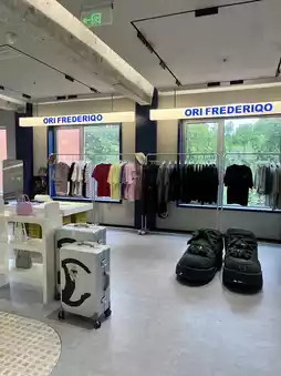 The first floor is dedicated to takeout orders, while the second floor features a charming showroom filled with goods like teddy bear figurines, eco-bags, and clothing. It's a delightful place to browse and shop.