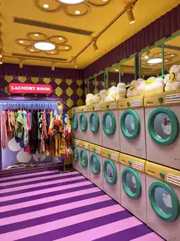 There are many visually creative and fun setups such as the large bear doll at the entrance, mirror points on the stairs, ceiling bears, and elevator photo zones.