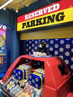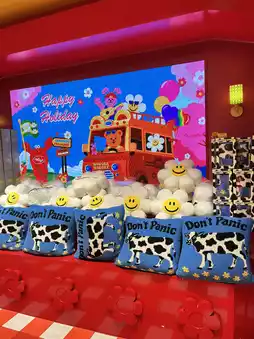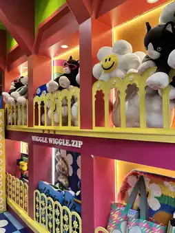 At the entrance, there is a large Wiggle Bear doll and an alien-shaped object, making it a very popular photo spot.