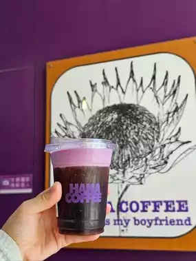 HANA COFFEE, located on Changshou Road (长寿路), has been gaining popularity recently, so I decided to give it a try. The café's exterior is decorated in purple, making it easy to spot.