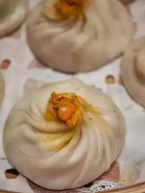 Must-Try: Crab roe tangbao. Rich, savory steamed buns—delicious!