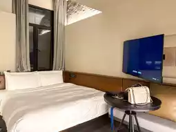 We stayed one night in a standard double room, and the bedding was clean, and the room had such a hip vibe that we were very satisfied. The sink structure and mirror lighting were unique, making it great for taking pictures. The breakfast area felt like a high-end bar, so the atmosphere was top-notch! You can see the Oriental Pearl Tower from the terrace, and they even provide magazines, making it perfect for capturing your best shots.