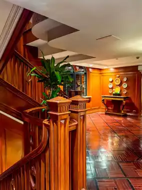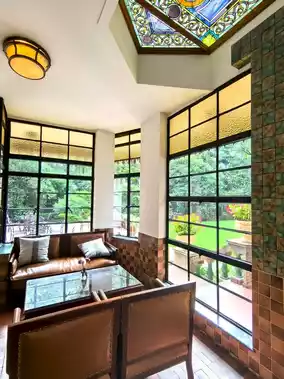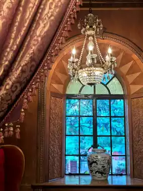 Inside the villa, exquisite details can be seen everywhere. Imported Italian mosaic floor tiles form patterns of marine creatures, handcrafted oak stair railings by British artisans are inlaid with ivory, and church-style stained glass windows depict biblical stories. The most interesting is an irregular tile at the corner of the second floor, said to be a "misprint" deliberately left by workers during construction, becoming the villa’s most unique mark.