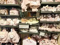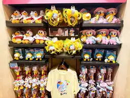 • The right side focuses especially on Duffy & Friends characters (Duffy the bear, ShellieMay, Linabell), with plush toys, keychains, and limited edition products.