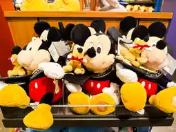 • The left side features various Disney characters, including plush toys, headbands, bracelets, cups, mugs, water bottles, and many other options.