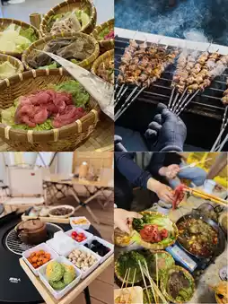 As night falls, the aroma of delicious food begins to fill the air. The owner has prepared fresh beef hotpot, with freshly sliced ribeye and fatty brisket briefly dipped in the boiling clear broth, then wrapped in satay sauce—so tender it makes you squint with delight. On the other side, the barbecue grill sizzles with lamb skewers, chicken wings, and eggplant, sprinkled with cumin and chili powder, the aroma tempting you to look back again and again. Everyone sits together, holding a cold beer in one hand and grilled meat in the other, chatting away as all worries are left behind.