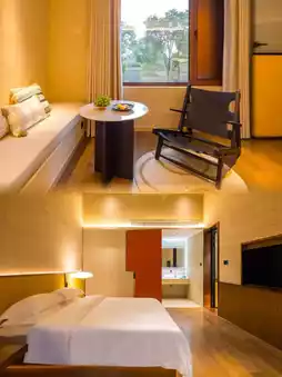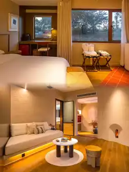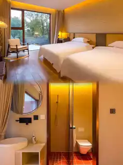 The rooms are simple yet tasteful, with floor-to-ceiling windows bringing the beautiful Dianshan Lake scenery indoors, allowing you to enjoy the sunrise and sunset right from your bed. High-quality bedding, smart home devices, and private bathrooms; some room types also feature private terraces and bathtubs to fully enjoy the leisurely lakeside time.