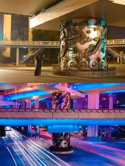 Of the many pillars supporting the elevated structures in Shanghai, the Dragon Pillar on East Yan'an Rd. is the most famous, not just for its design but also for the story behind its construction. It's said that engineers were unable to drill through the soil in the area, despite Shanghai's typically soft soil structure. This led to construction being halted. A Chinese monk explained that the engineers were trying to drill through a dragon vein and suggested decorating the pillar with nine golden dragons. The monks then performed ancient chanting ceremonies at the site for several days before the ground finally gave way. The monk died shortly thereafter. Although some experts have offered scientific explanations, the Dragon Pillar remains one of Shanghai's most famous legends.