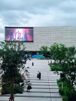 🎈 The metallic curves of the Dome Art Center are the first to capture the night’s breath, with cool silver light flowing along the building’s ridge, outlining this modern sanctuary with increasing lightness. The edges of the West Bund Grand Theatre grow deeper in the dusk, resembling a translucent crystal box. The vivid images on the big screen float out with melodies, scattering into lingering notes in the moist river breeze.