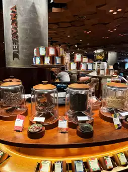 The menu boasts over 100 beverages, including exclusive offerings like the Shanghai Lane Romance, a cold brew infused with Chinese yellow rice wine and plum syrup. In addition to coffee, the Roastery serves a selection of beers and artisanal pastries. Visitors can also explore a 3D-printed Teavana bar, offering a contemporary tea-tasting experience.