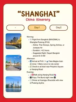 • 🛂 Arrival at PVG → 🚄 Take Maglev train (8 mins) + Metro Line 2 to city center